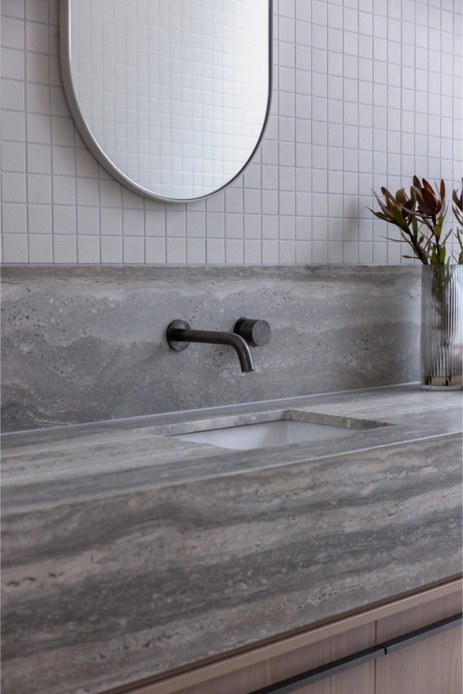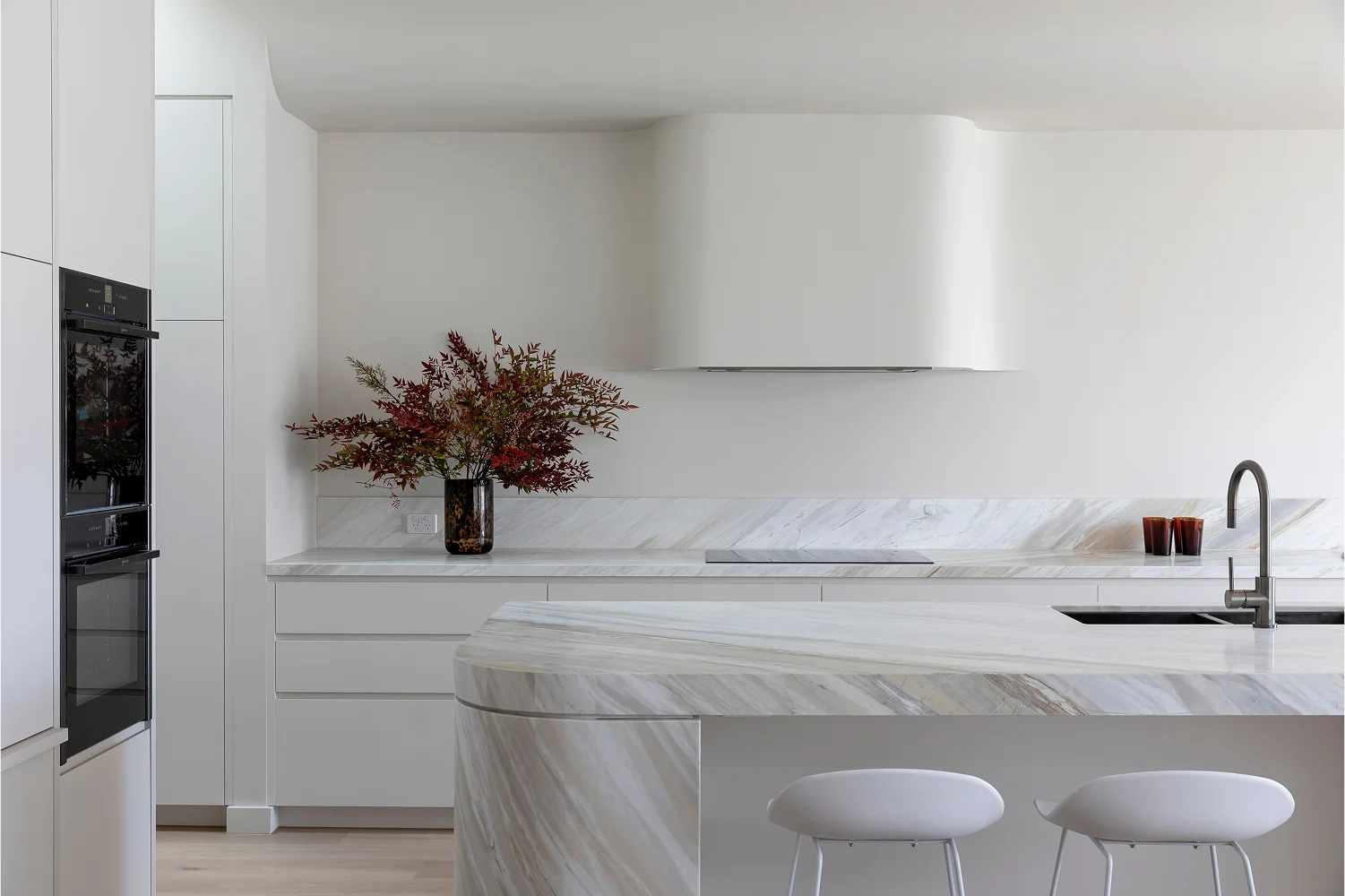 At Top Notch Stone, we were proud to contribute to this vision by delivering high-quality stonework throughout the residence. Our team crafted and installed the kitchen benchtops, vanity benchtops, Splashbacks, stairs, and more. Each piece carefully finished to complement the architectural style and enhance everyday functionality. The result is a home where design and material excellence come together in perfect harmony.